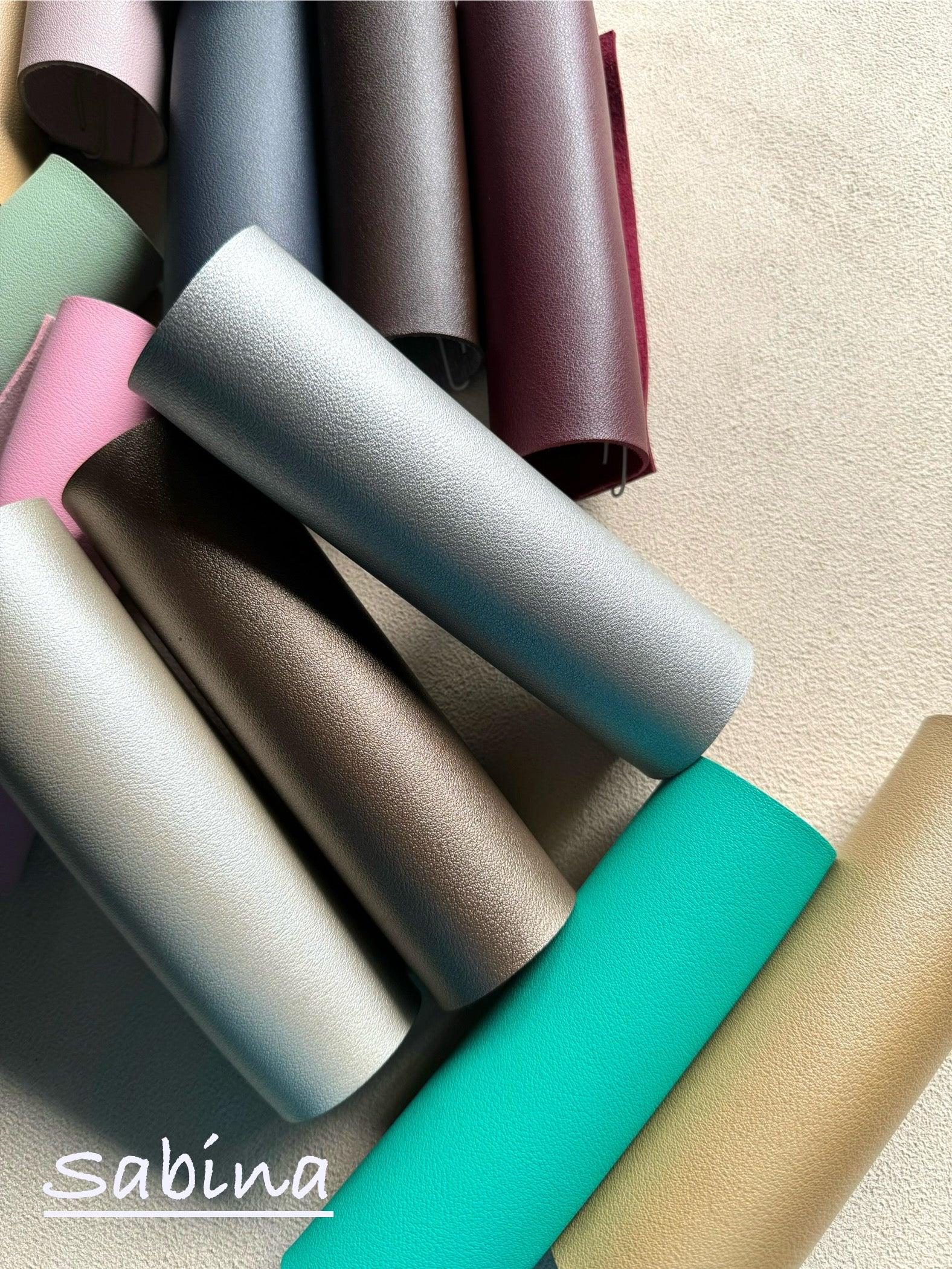Our Sabina faux leather features a structured appearance yet maintains its softness to the touch. It has a deluxe velvety suede brush backing creating a leather-like appearance for an added lining option. It has a refined grain texture which gives it a luxurious and premium look. It is relatively thicker compared to its contemporaries.