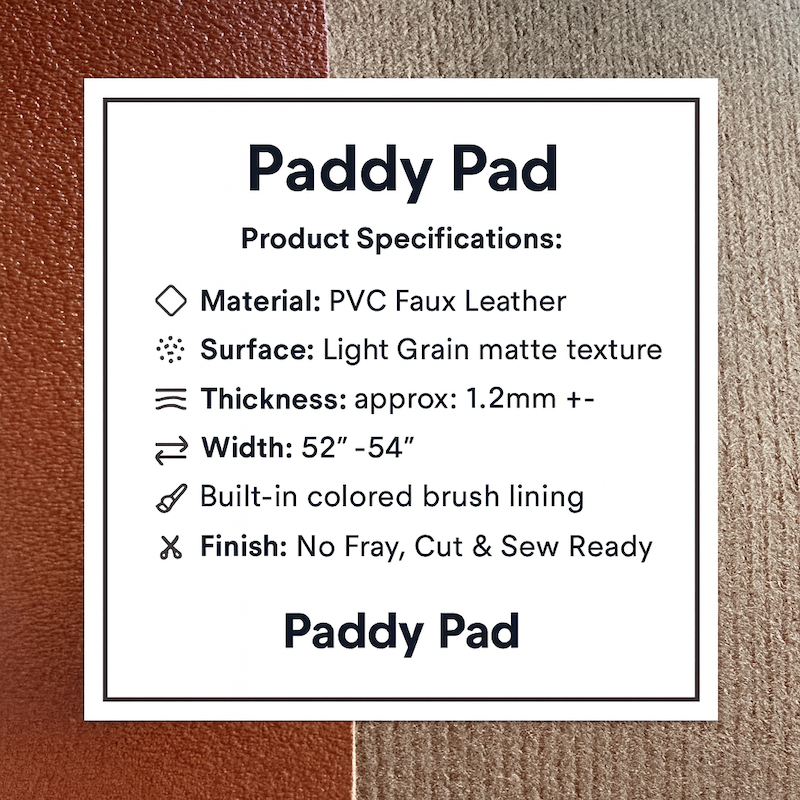 Every cut looks finished. Paddy Pad Faux Leather features matching colored backing and colored sidings—no need for lining or edge paint. It’s durable, no-fray, and easy to stitch for sandals, bags, and wallets.